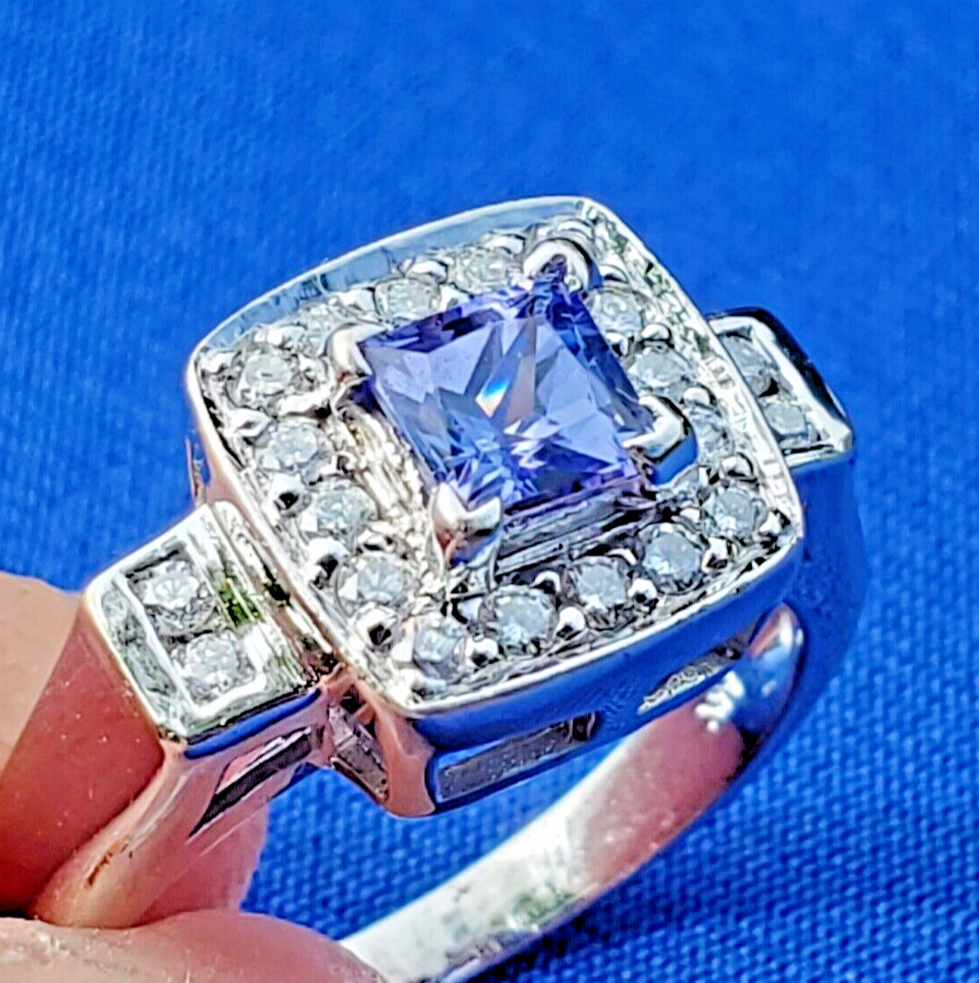 ELEGANT TANZANITE DIAMOND 14K ENGAGEMENT STATEMENT RING.