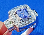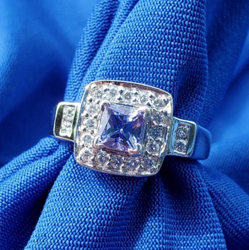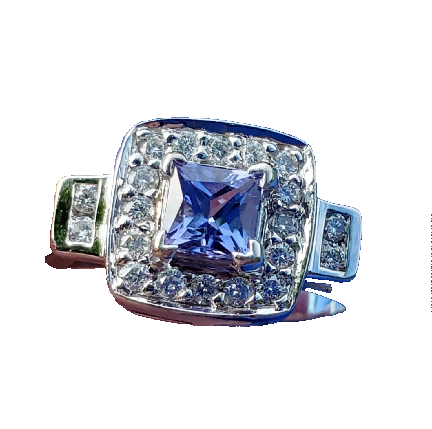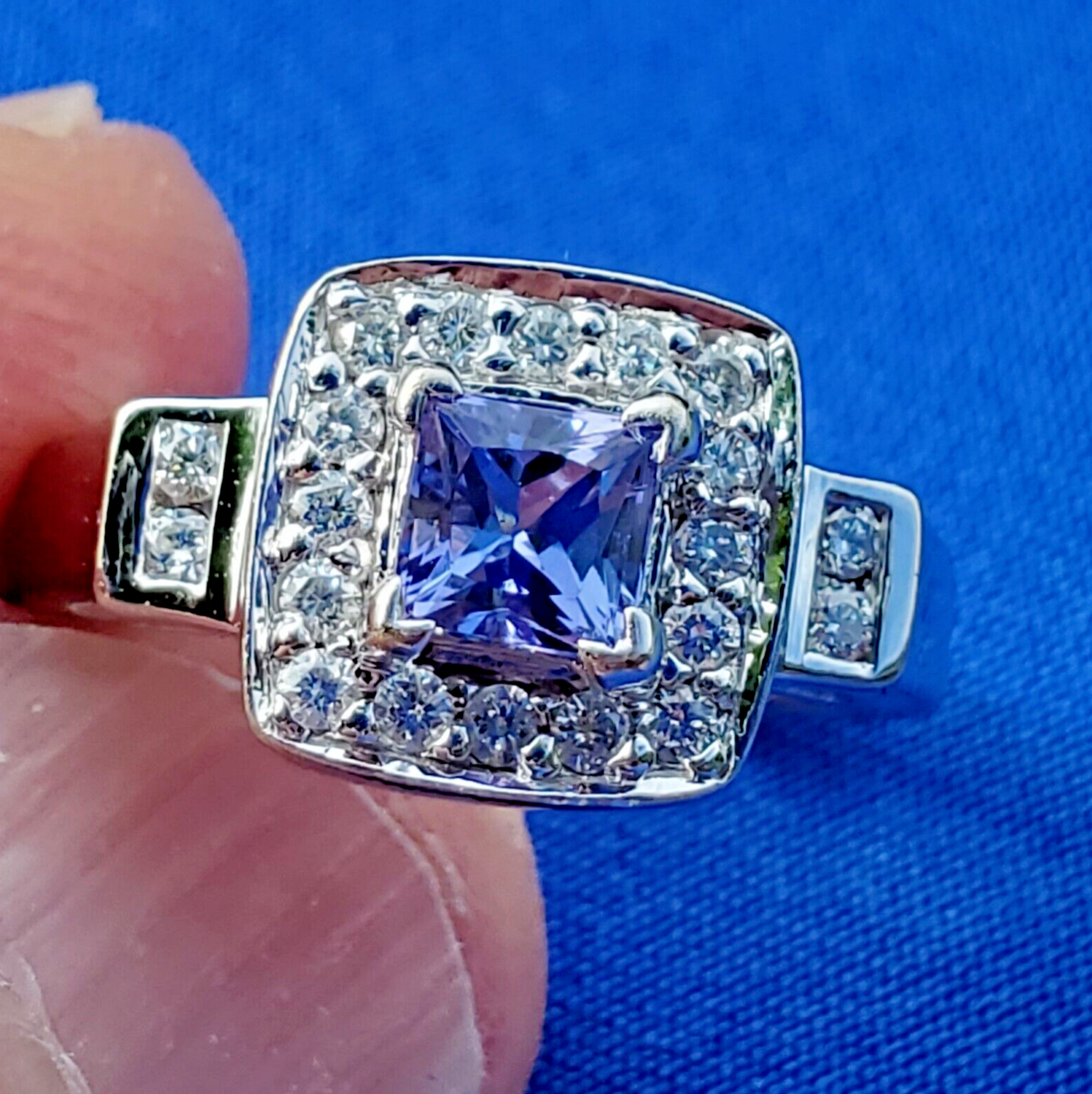 - Tanzanite Diamond Deco Halo Style Engagement Ring Solitaire 14k Solid White Gold