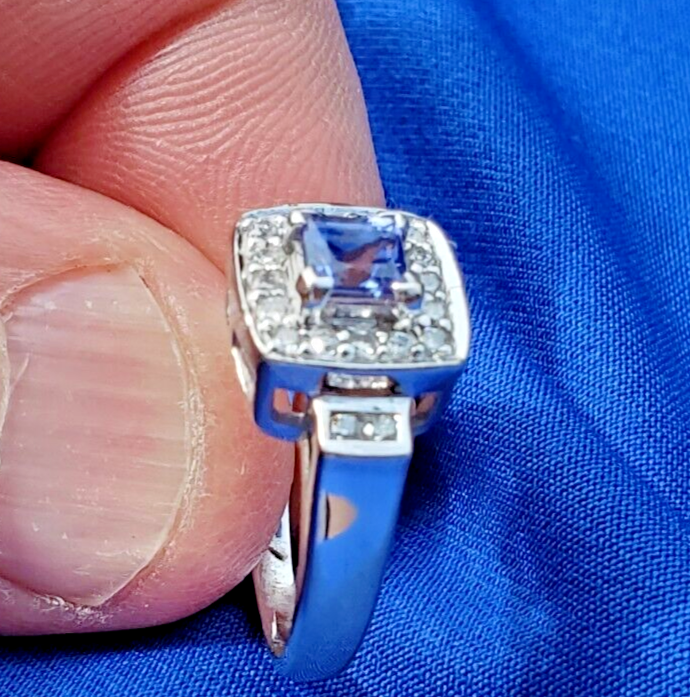 DIAMOND AND TANZANITE 14K WHITE GOLD SOLITAIRE.