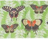 Beautiful butterflies and white ferns on a green background table runner. Woven, fully hemmed with backing. 13 x 72 inches. Art design by Jean Plout/Main Line Art. Made in the USA