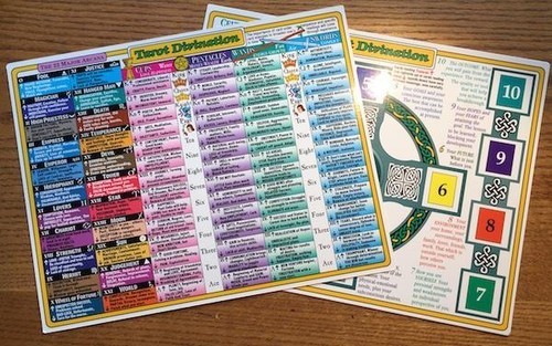 This wonderful chart includes several layouts, how to read the cards, and explanation of the each particular card in a deck (based on a Rider-Waite deck).