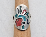 TAXCO 925 STERLING SILVER MAYAN AZTEC WARRIOR TURQUOISE AND CORAL RING SIZE 7.75