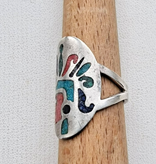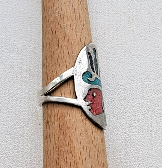 - TAXCO 925 STERLING SILVER MAYAN AZTEC WARRIOR TURQUOISE AND CORAL RING SIZE 7.75