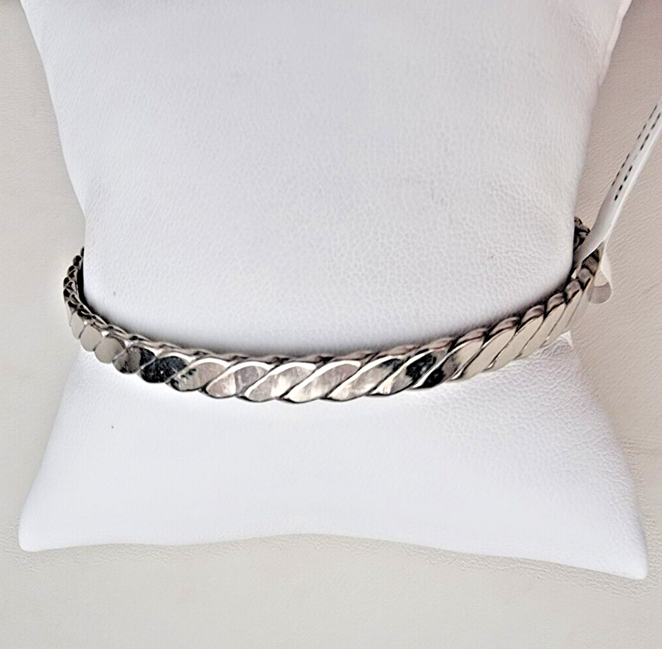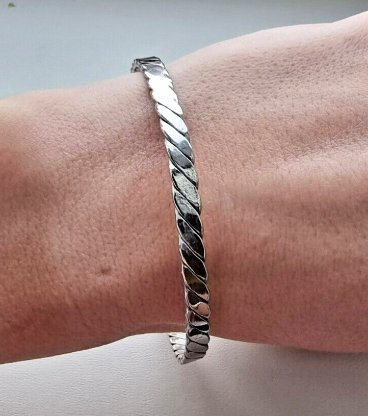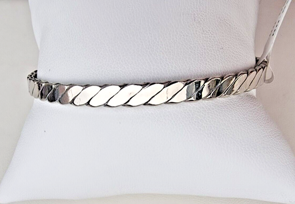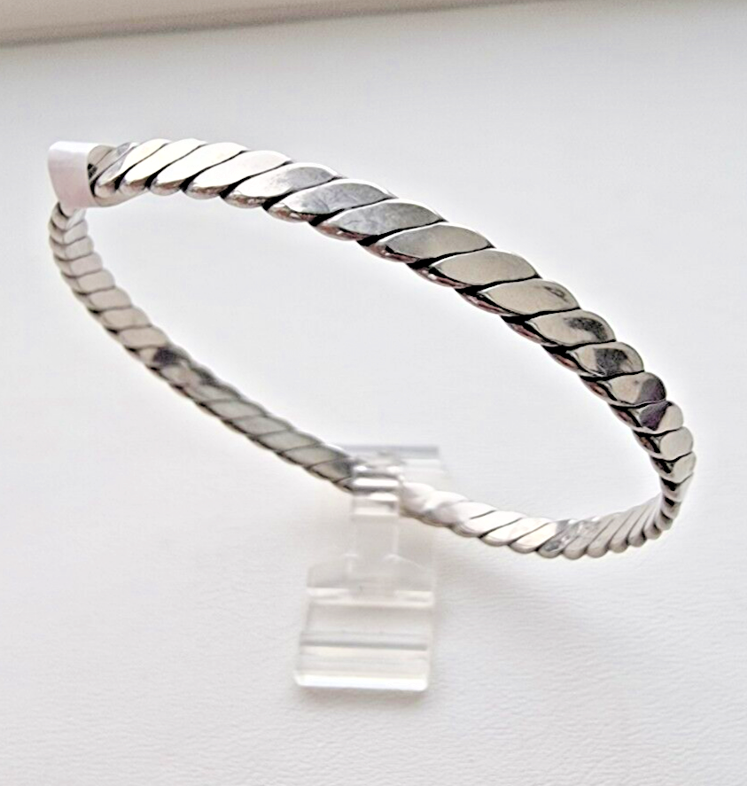 - TAXCO VINTAGE 925 STERLING SILVER TWISTED FLAT BANGLE BRACELET
