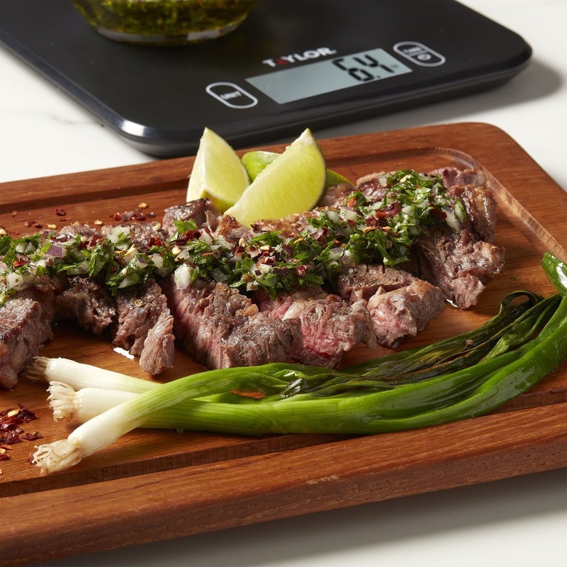This easy-to-use Taylor Kitchen Scale is treated with a food-safe safe antimicrobial additive that inhibits the growth of odor and stain causing bacteria on the scale surface. This product does not protect users or others against food-borne bacteria. Always clean and wash this product thoroughly before and after each use. The extra-large 1.1 inch display has a backlight for easy reading. Simply press the unit button to switch between pounds, grams, fluid ounces, and milliliters. Weighs up to a max capacity of 11 pounds. Perfect for everyday household tasks!