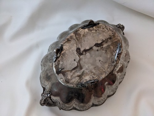 Tazon Reticulado Con Mangos De Cabeza De Carnero De Plata Vieja 17 X 11 Pulgadas
