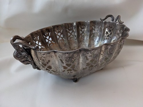 Tazón Reticulado Con Mangos De Cabeza De Carnero De Plata Vieja 17 X 11 Pulgadas