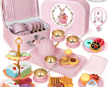 Tea Party Set for Little Girls, 49PCS Princess Tea Time Toys Including Tea Set D