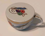 This collectible tin tea cup from Elite gift boxes features a beautiful blue bird and floral design with a decorative lid. Made in 1997, it is a small size and suitable for all occasions. The tin material and white color make it a stylish addition to any collection. Perfect for display or use, this tea cup is a must-have for any bird or floral lover.Normal wear.
