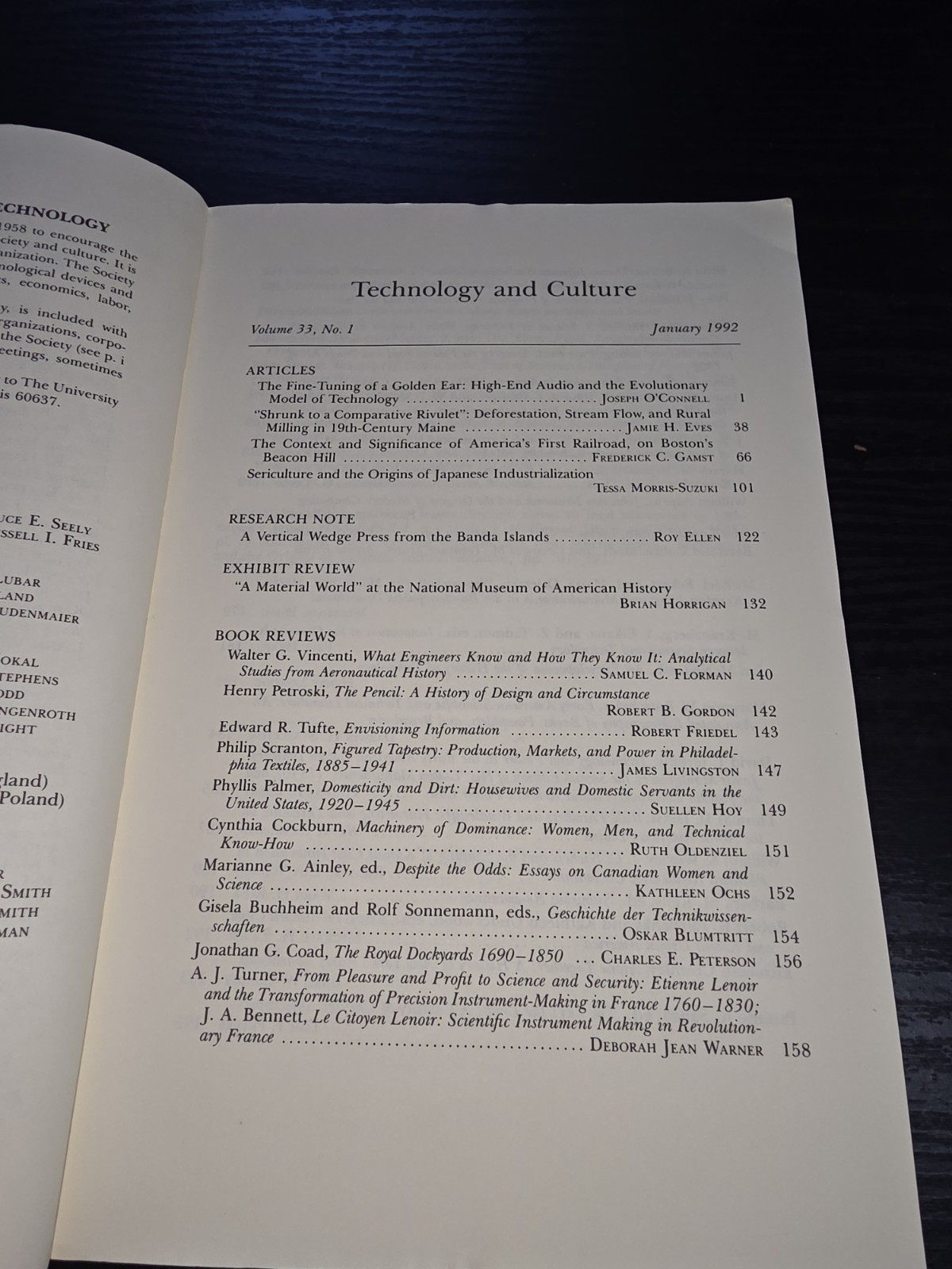 - Technology & Culture International Quarterly Society History 1992 Vol 33 #1