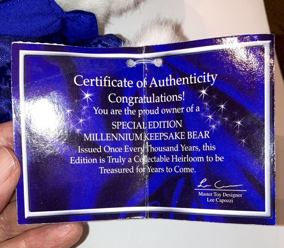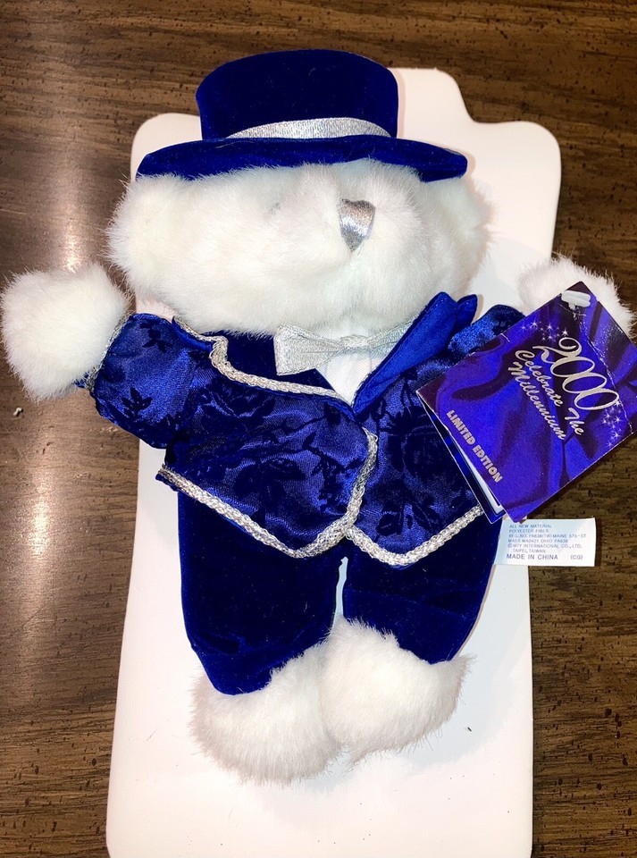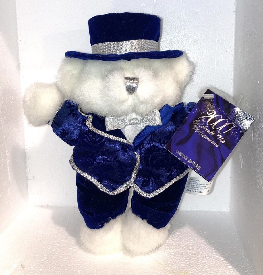 - Teddy Bear Celebrate the Millennium Vintage Blue White Silver 2000 Small 9"