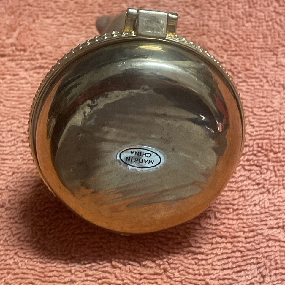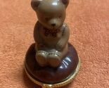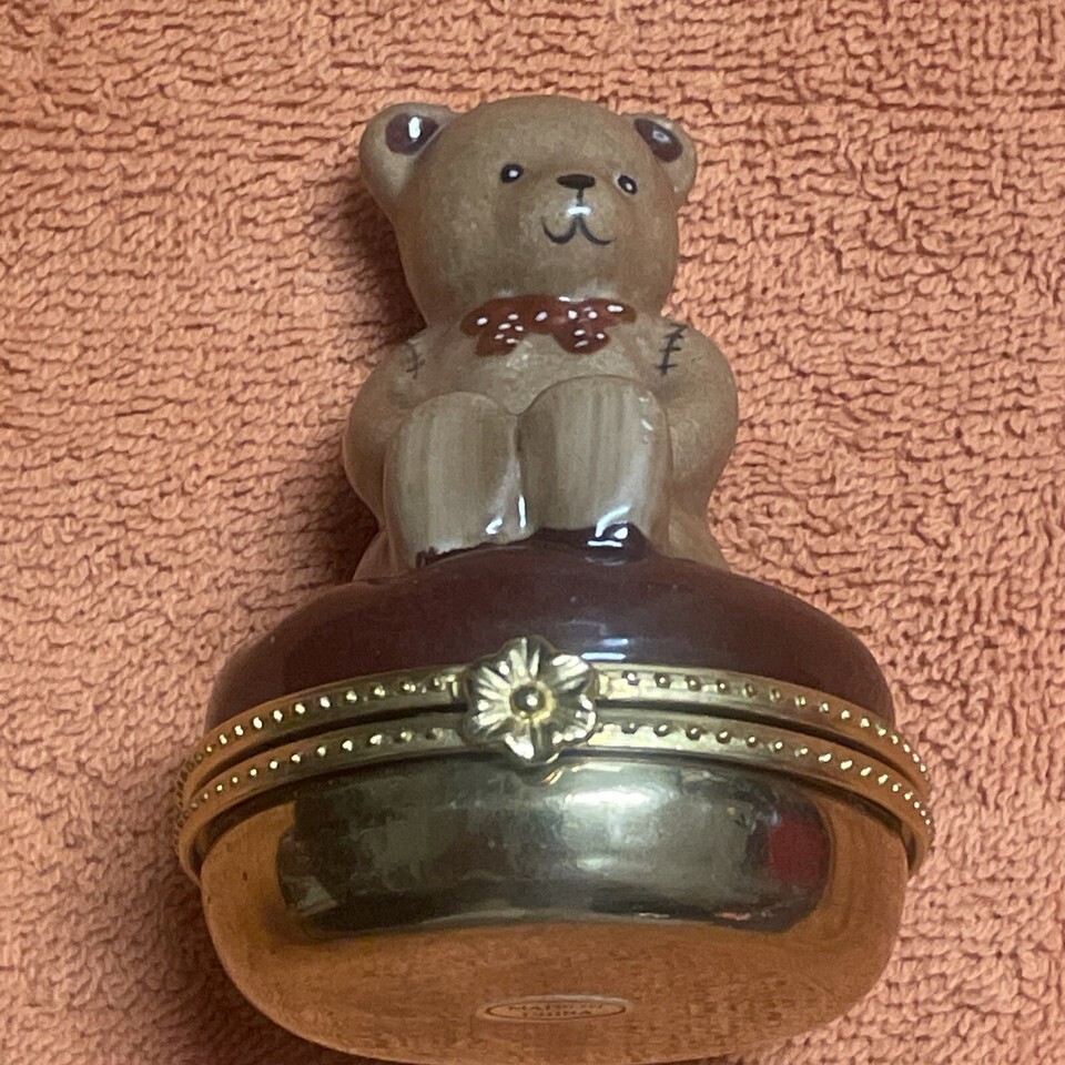 - Teddy Bear Hinged Ceramic Trinket Box Burgundy Base Gold Tone