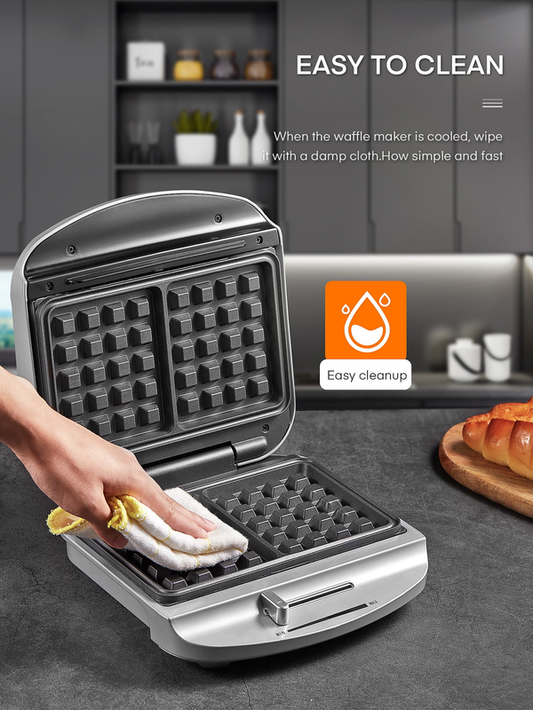 Temperature Control, 4 Minutes Waffles, Nonstick Surfaces, Anti-Scald, Indicator Lights, 1000W, New