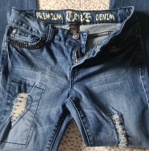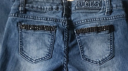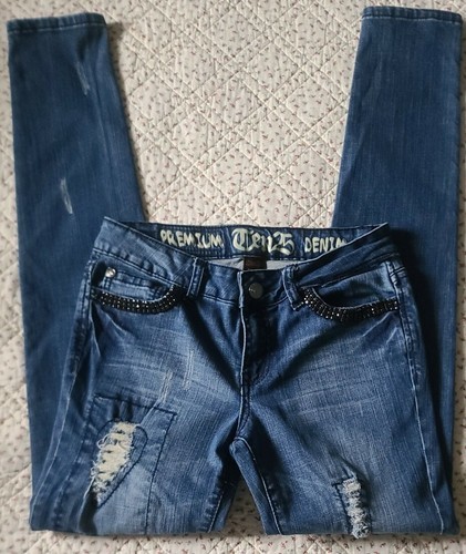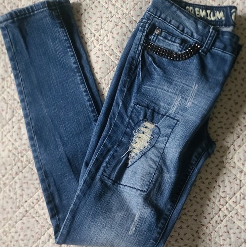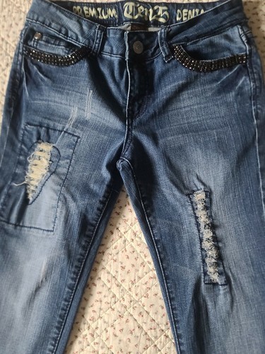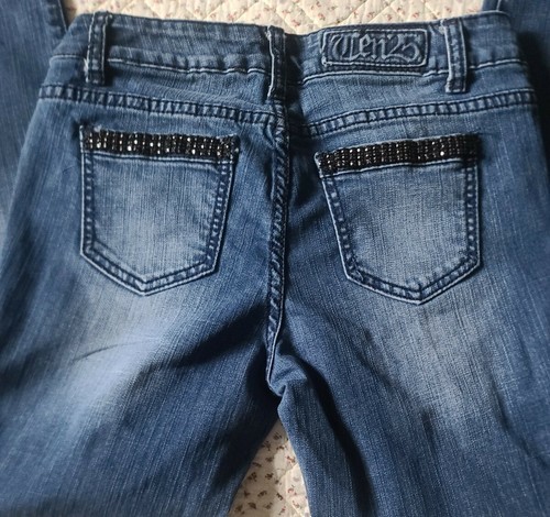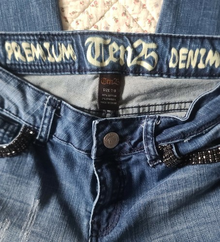 - Ten 25 ~ Distressed ~ Denim Blue Jeans ~ Juniors Size 7/8 ~ Embellished Pockets