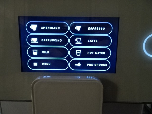 The unit powers on normally, screen and grinder respond, and all functions can be selected from the touchscreen.