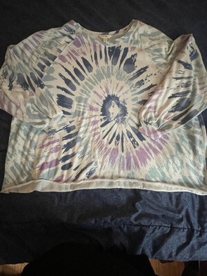 - Terra & Sky Sweatshirt 2X Pastel Spiral Tie Dye Print Top Relaxed Fit Boho Shirt