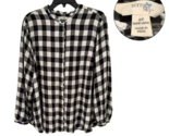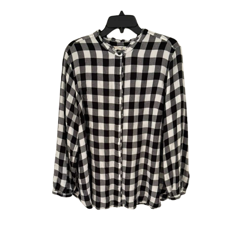 - Terra & Sky Women’s Black White Gingham Check Blouse Size 2X Long Sleeve