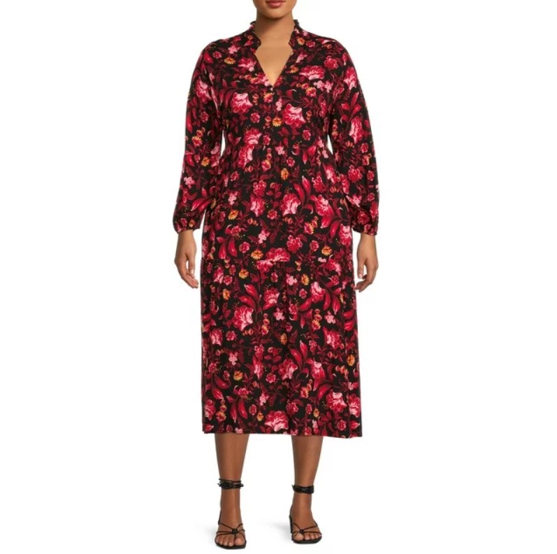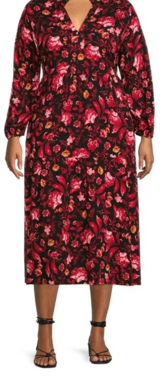 - Terra & Sky Women's Plus Size Printed Peasant Midi Dress 3X(24W-26W)