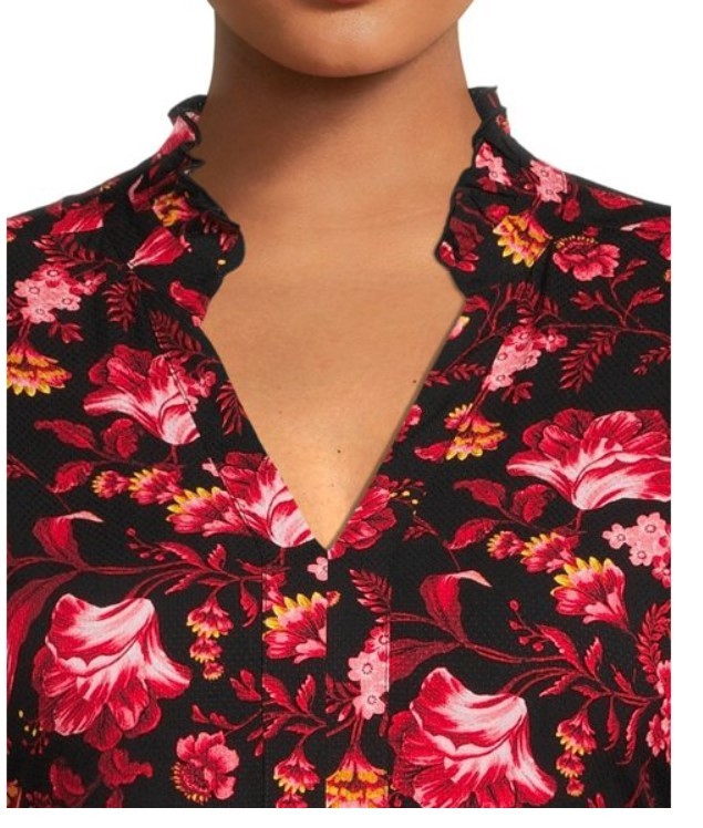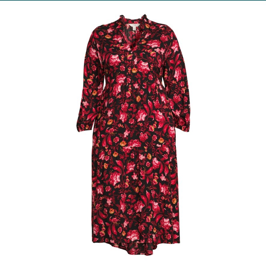 Bold prints add undeniable interest to this peasant dress from Terra Sky finished with ruffle details at the neckline and floaty peasant sleeves.