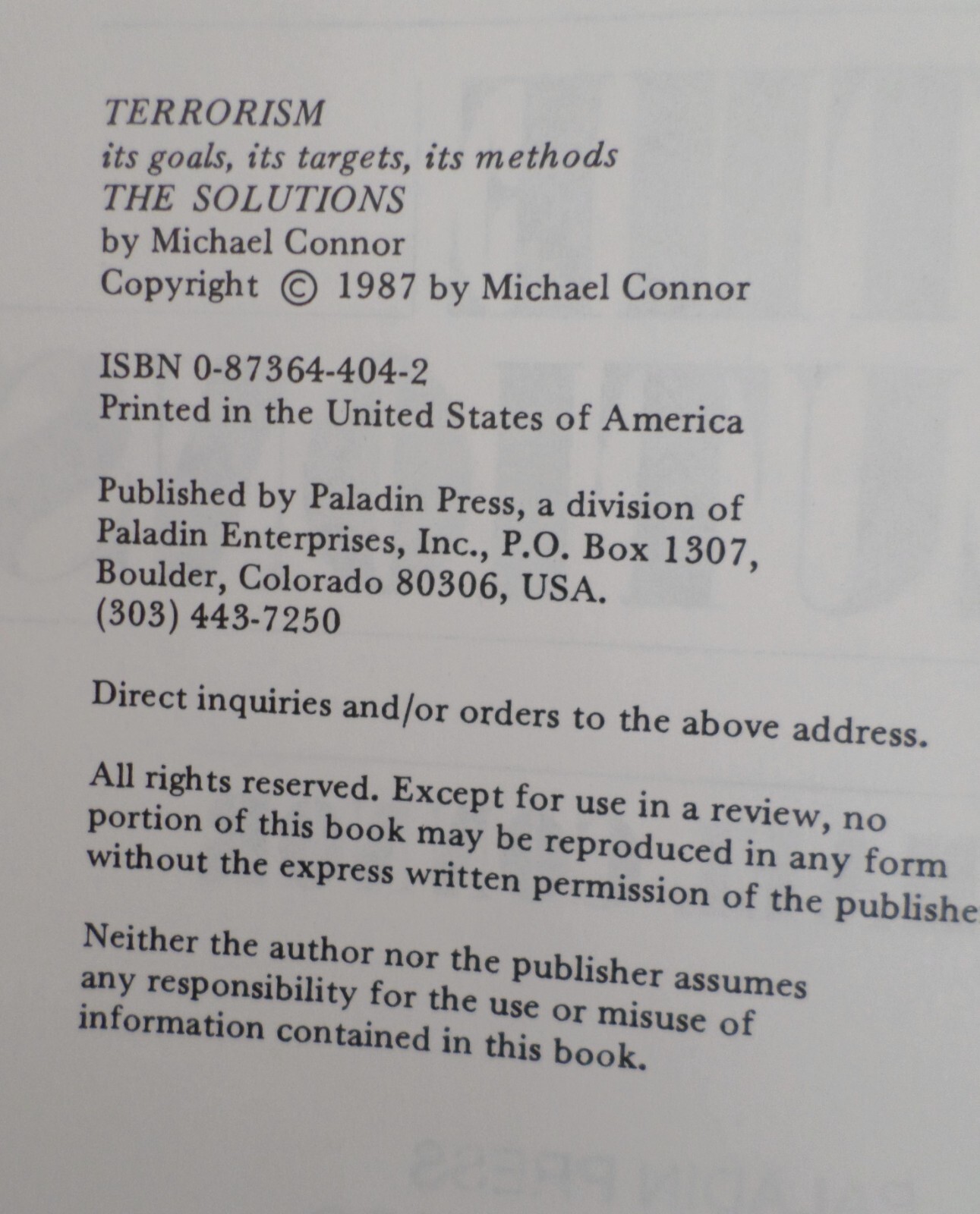 - Terrorism: It's Goals It's Targets, It's Methods The Solutions Connor 1987