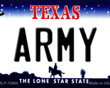 Texas Army Novelty Mini Metal License Plate. 2.2" x 4" high gloss Novelty Mini Metal License Plate Tag. Made of the highest quality aluminum for a weather resistant finish. It is lightweight and durable. Pre-drilled holes for quick and easy mounting on any vehicle, or add a ribbon, wire, or string to instantly turn this license plate into a sign and display it on a wall or door. Individually shrink-wrapped and proudly made in the USA.