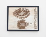 Transform your space with this stunning laser-engraved stadium blueprint artwork, beautifully rendered on high-quality wood. This detailed architectural drawing showcases the iconic layout of Darrell K Royal-Texas Memorial Stadium and Neuhaus Athletic Center, featuring both aerial and sectional views that capture every intricate detail. The piece includes precise markings of visitor and home sidelines, seating sections, and facility locations. Elegantly framed in black, this sophisticated wall art makes a perfect statement piece for sports enthusiasts and architecture admirers alike. The natural wood grain adds warmth and character to the laser-etched design, while the precise engraving technique ensures crisp, clear detail reproduction. This unique piece of memorabilia combines athletic heritage with architectural artistry, making it an ideal addition to any office, den, or fan cave.