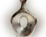 - Textured silver vase, geometric oval shape with center cut out. Modern, sleek.