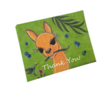 The Thank You Blank Card features a contemporary design by Marie Longston. It depicts a big-eye deer with a heart shaped nose. A hummingbird hovers near the deer's face.. The card is green in color and has a theme of animals. Measuring 4 inches in height and 5.25 inches in width, this folded card is part of Marie's Imagination product line, perfect for a multipurpose occasion.