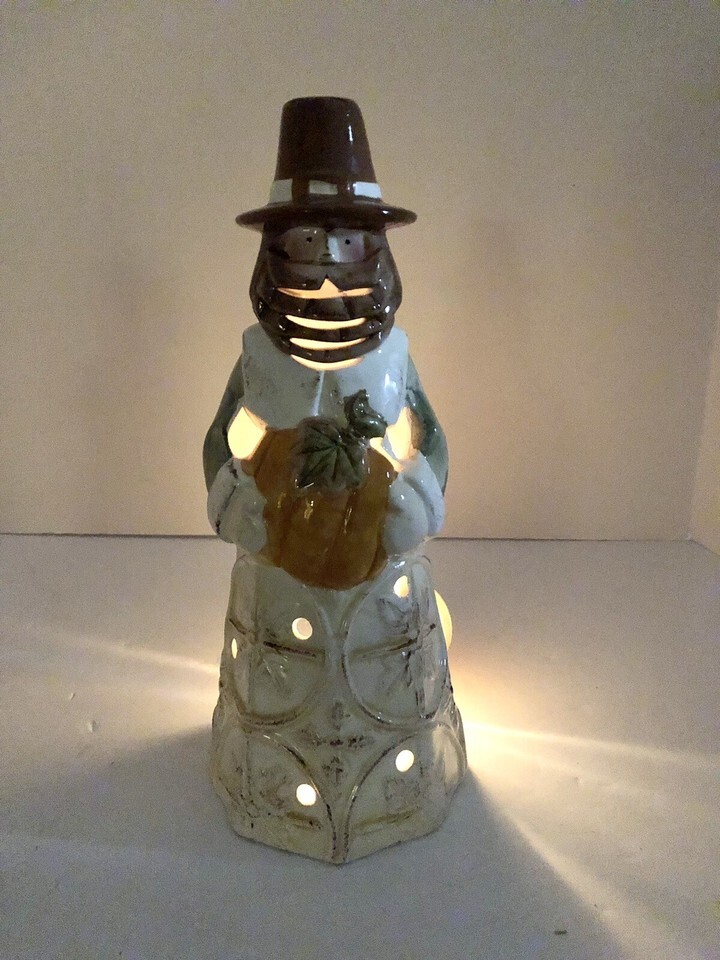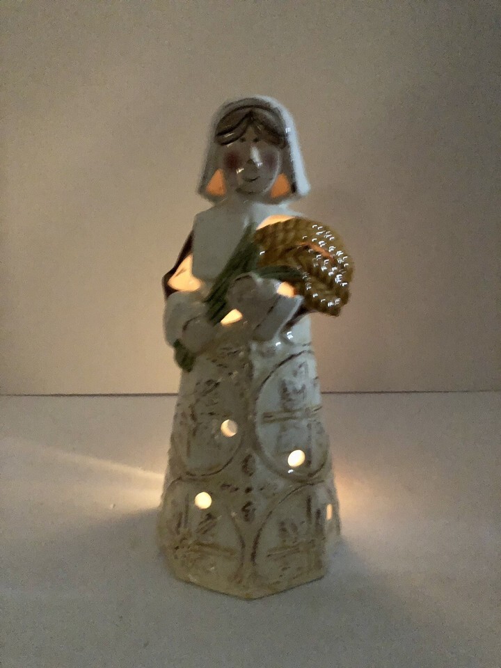 - Thanksgiving PILGRIM COUPLE Harvest Time Candle Tea Light Holders Man 12” Lady11