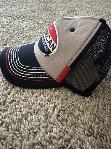 The American Outdoorsman Trucker Hat Cap Adjustable Mesh Blue/Gray Distressed