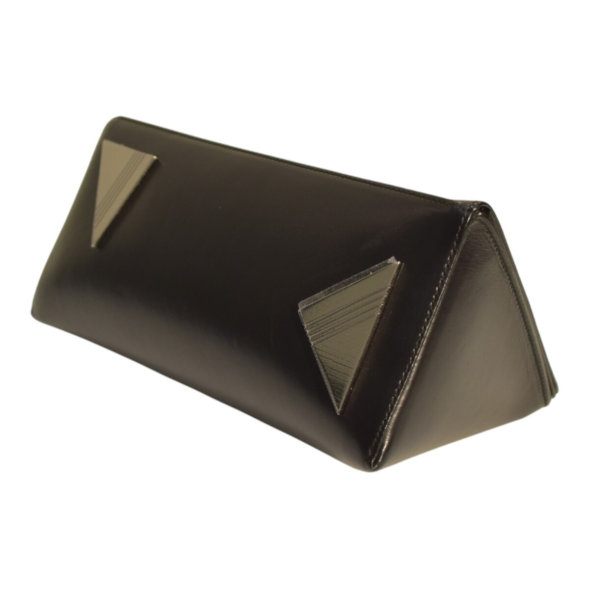 - The Attico 8.30PM Black Triangle Clutch Bag Structured Leather Geometric Design