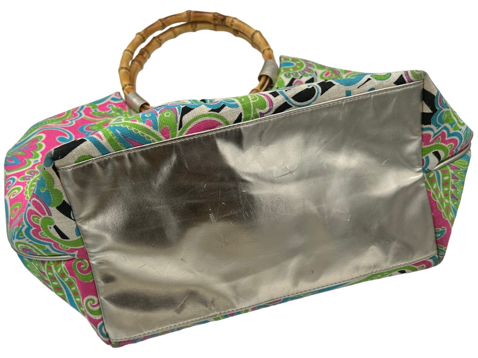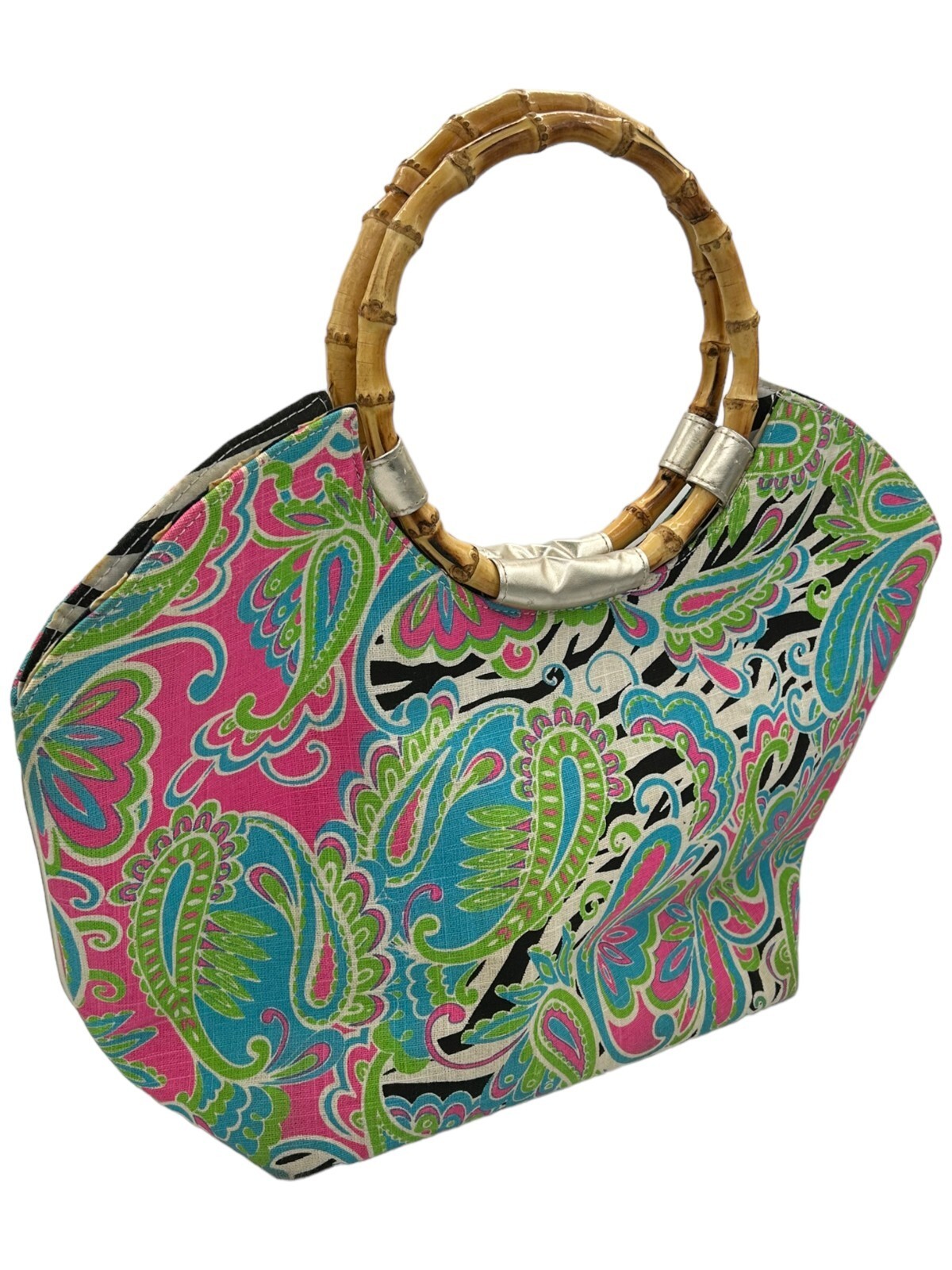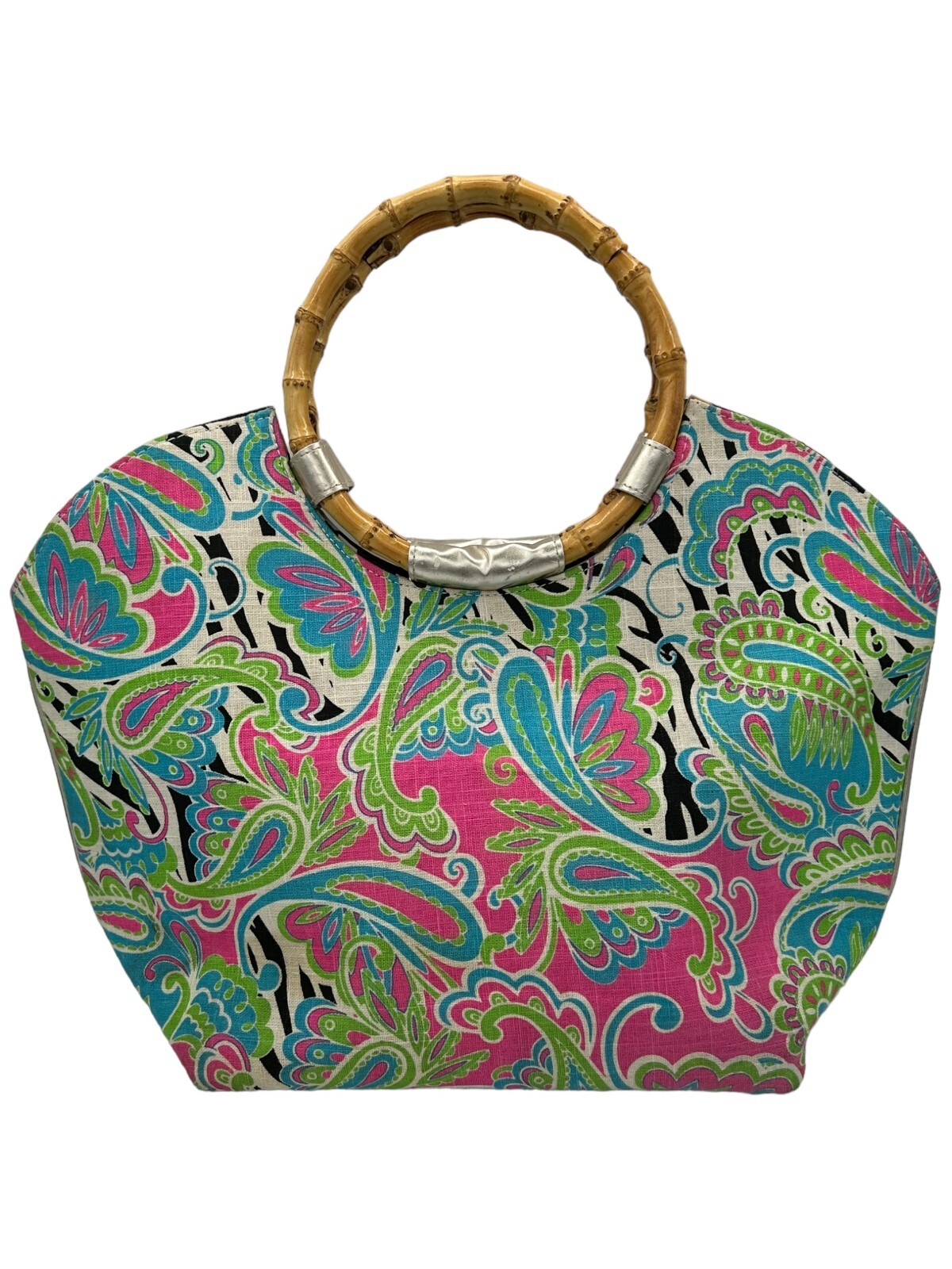 The Bag Lady - Mudpie Paisley beach tote bag with bamboo handles