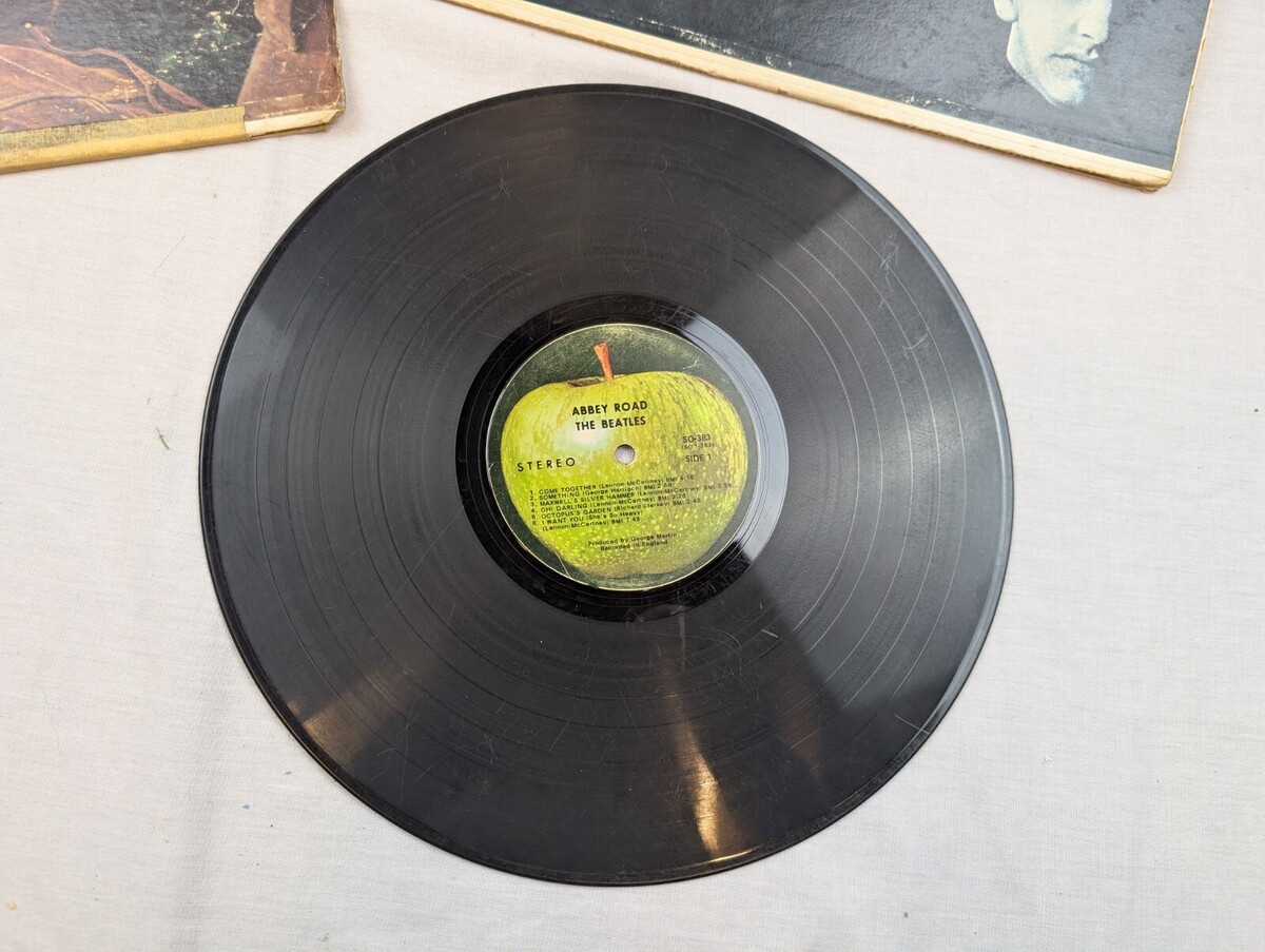 Abbey Road (Apple SO-383). Record only (no cover or sleeve). There is crackling throughout on this one. There is a skip at the end of Come Together. On side 2 there is light crackling throughout and a couple of skips on Here Comes The Sun :-(