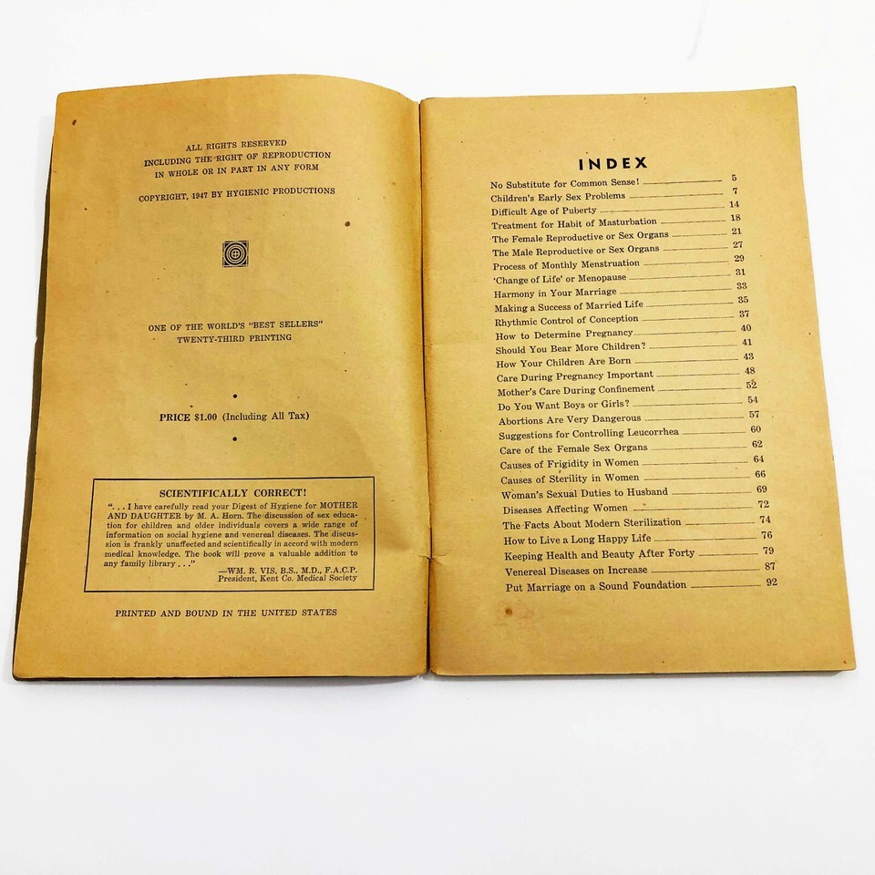 - The Digest of Hygiene Mother and Daughter M.A.Horn PB 92 Pages Copyright 1947