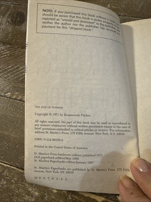 "The End of Summer" is a paperback book written by Rosamunde Pilcher in English. This novel is a part of the series that follows the story of the Schwab family during the summer in England. With its engaging plot and captivating storytelling, readers can immerse themselves in the charming world of the Schwabs and enjoy the memorable moments of the end of summer. The paperback format makes it convenient for reading on-the-go, allowing readers to enjoy the delightful escapades of the Schwab family wherever they may be.
