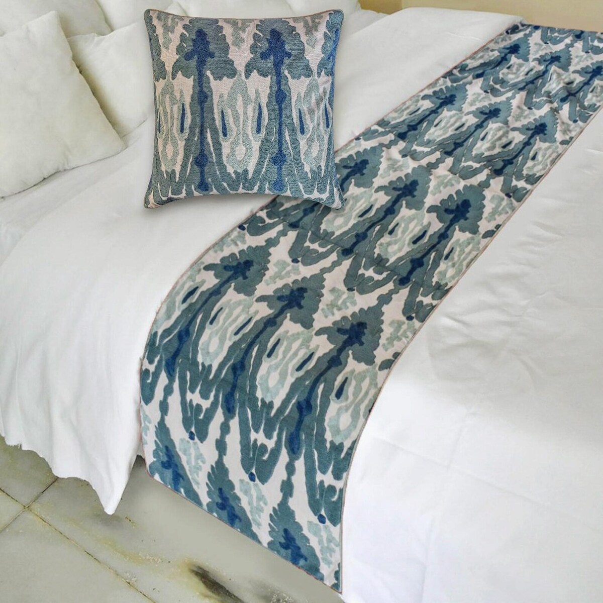 This Blue Mirage Bed Runner is made from a beautiful Cotton fabric with Embroidered Bed Runner, Ikat texture and has a complimenting back.