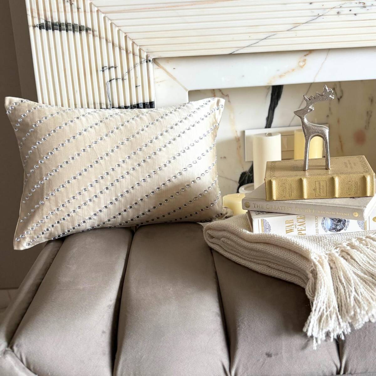 The HomeCentric Cream Satin Lumbar Pillow Cover - Crystal Bliss
