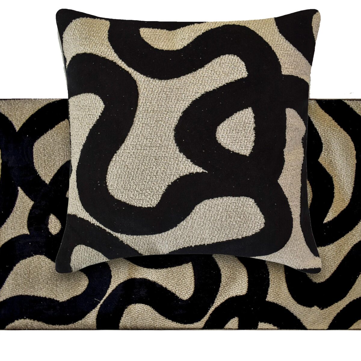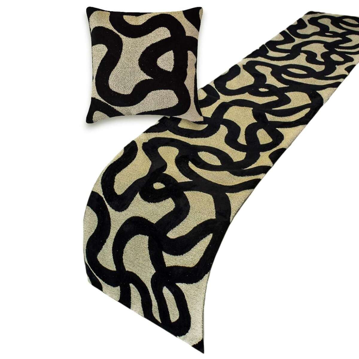 - The HomeCentric Cut Velvet Black Decorative Bed Runner and Pillow Cover - Noir S
