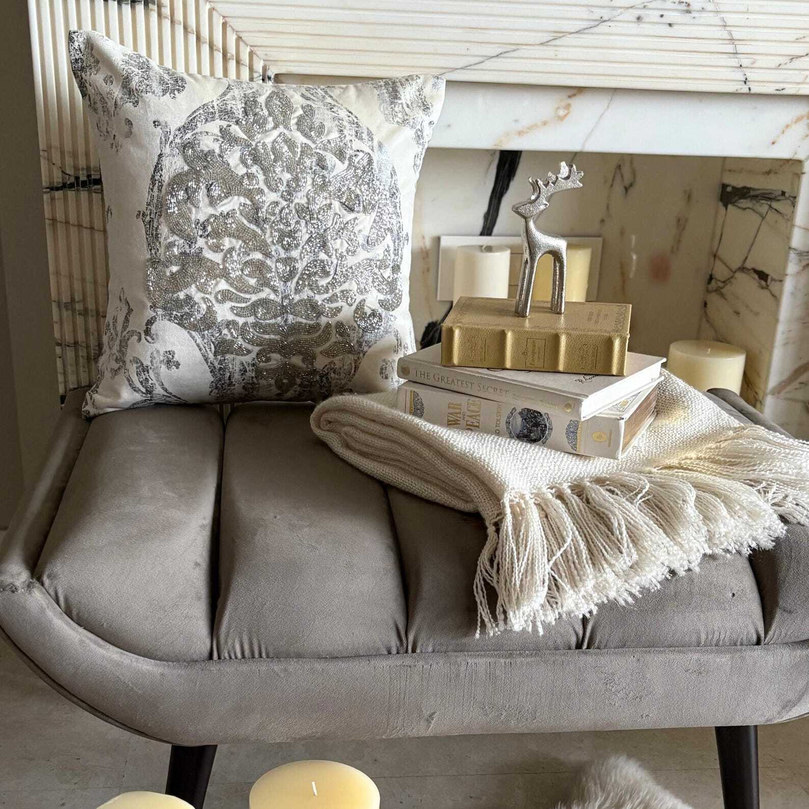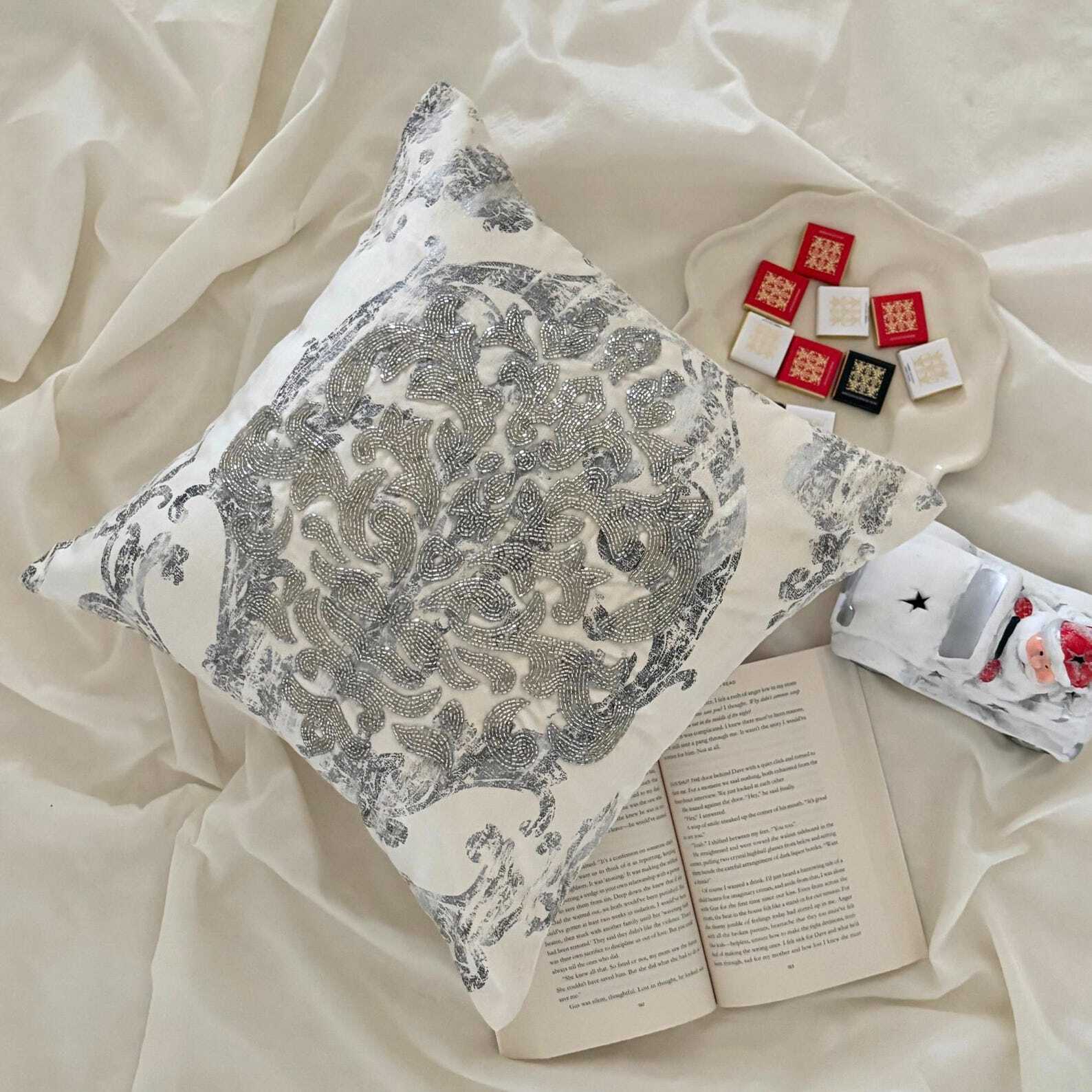 Frosted Glamour is an exclusive 100% handmade decorative pillow cover designed and created with intrinsic detailing. A perfect item to decorate your living room, bedroom, office, couch, chair, sofa or bed. The real color may not be the exactly same as showing in the pictures due to the color difference of monitors.