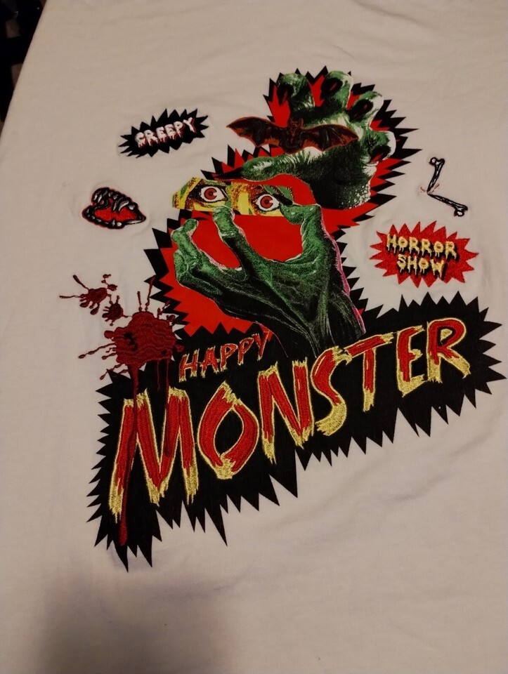 - THE KOOPLES HAPPY MONSTER COTTON WHITE JERSEY T SHIRT IN WHi01 Mens Large