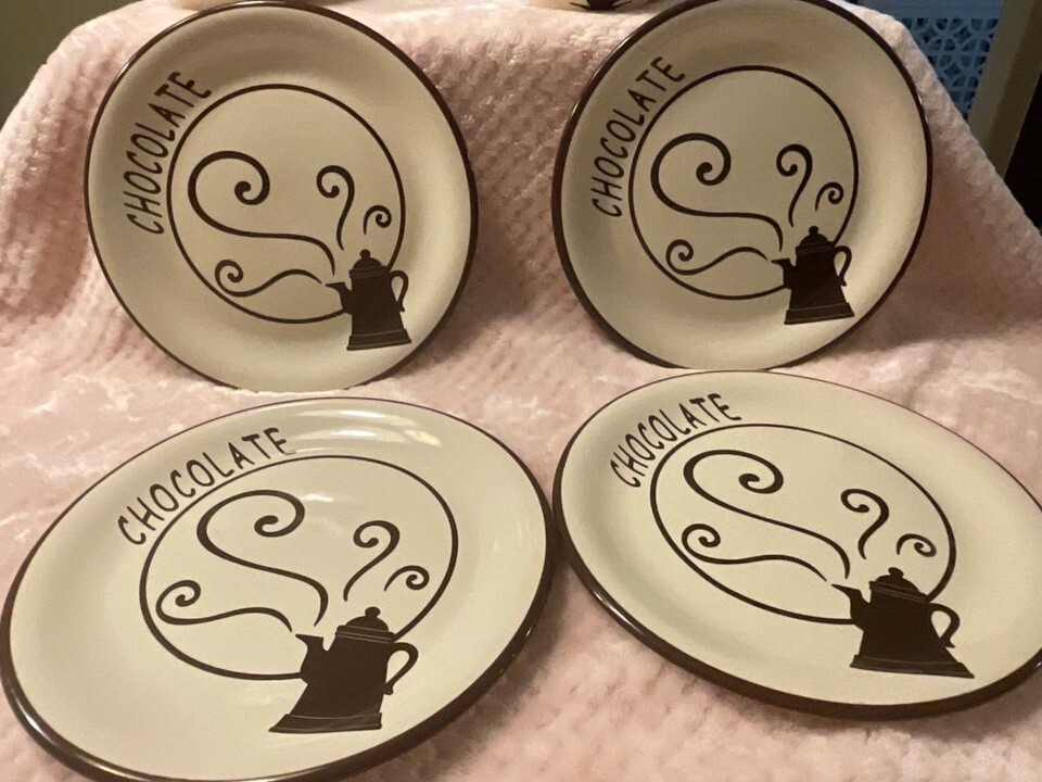 Includes 4 dessert plates, 8" and 4 matching tea cup style cups.