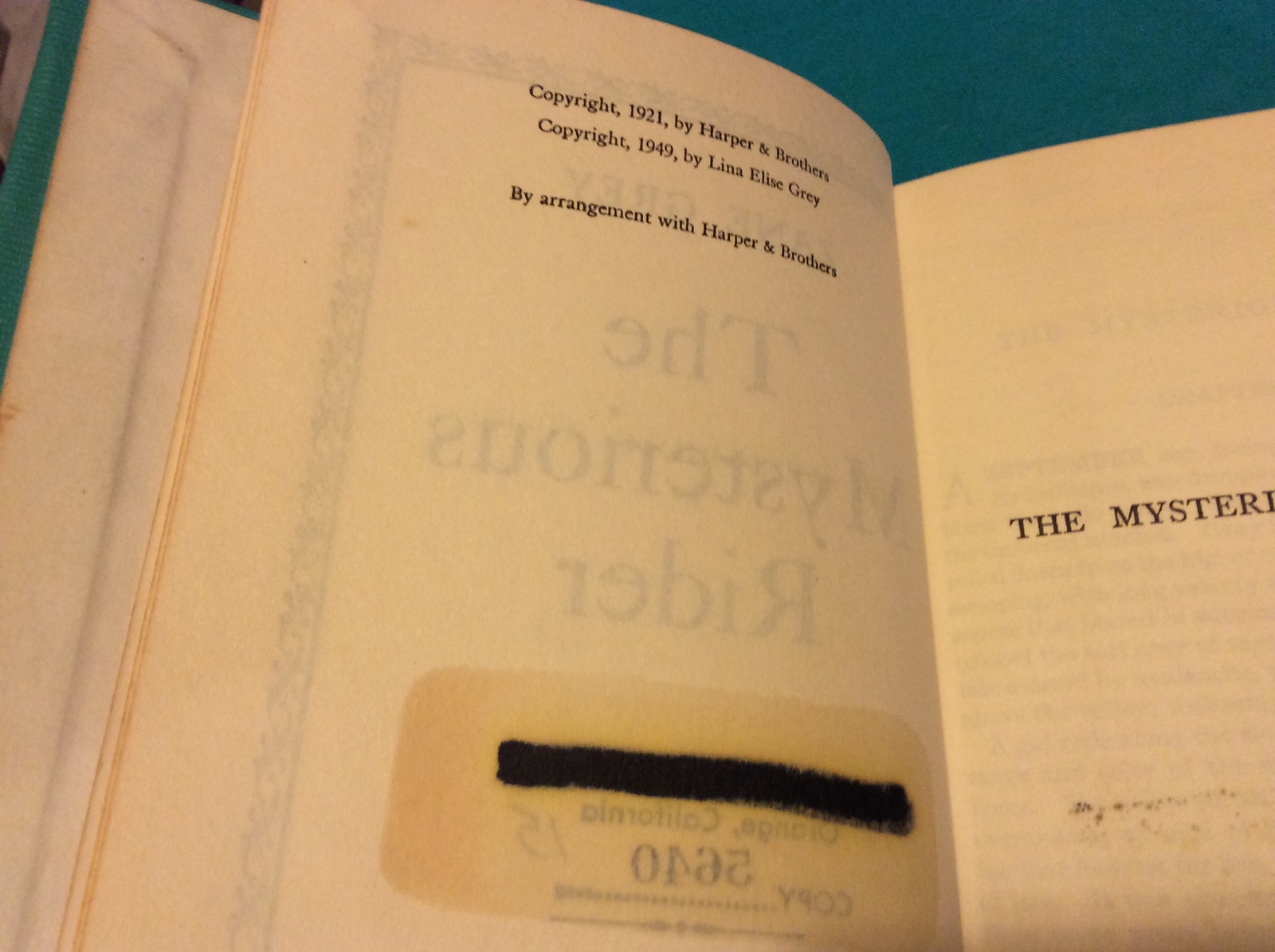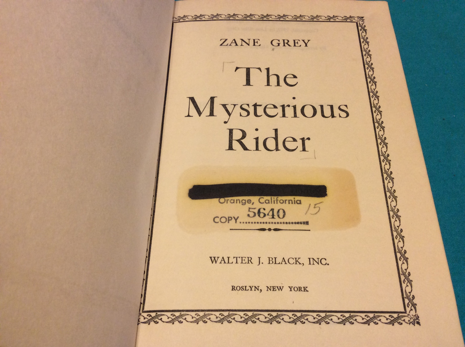 THE MYSTERIOUS RIDER by ZANE GREY - Hardcover - 1949 EDITION - Free Shipping