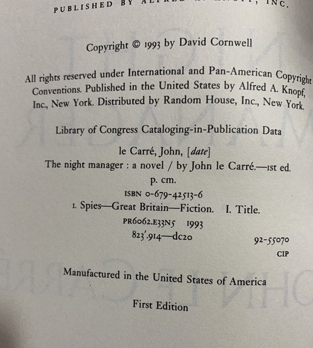 - THE NIGHT MANAGER - John Le Carré signed 1st + Adv Reader BOTH copies PRISTINE!