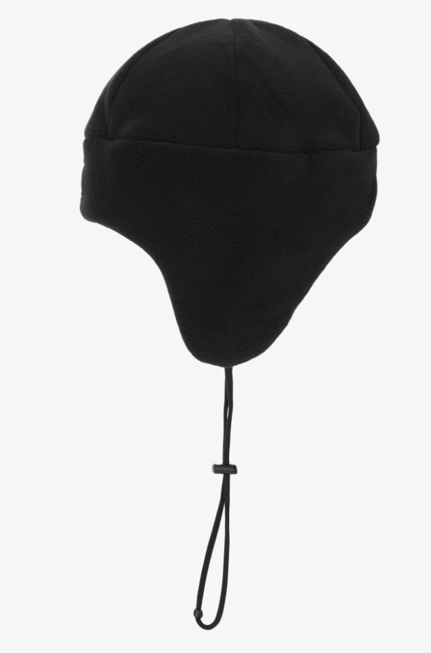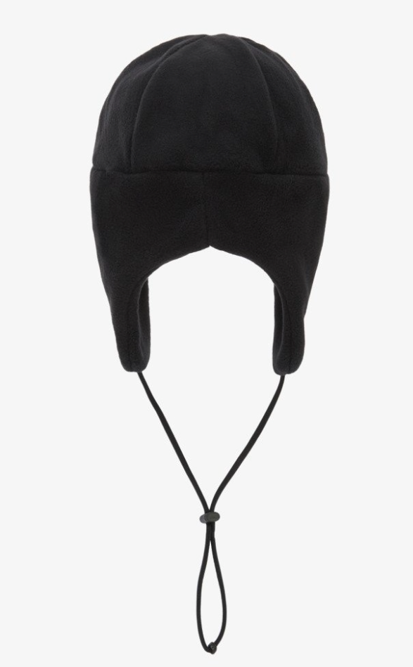 This is a lightweight and warm earflap-style beanie made from micro-fleece material.