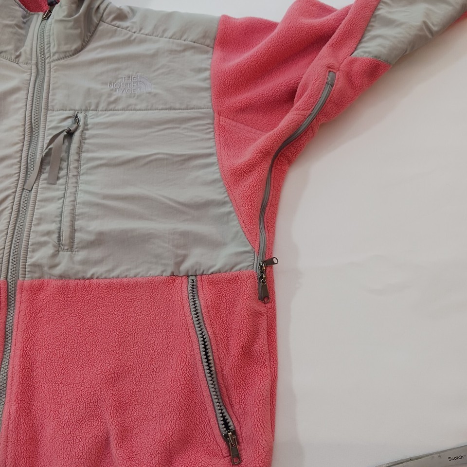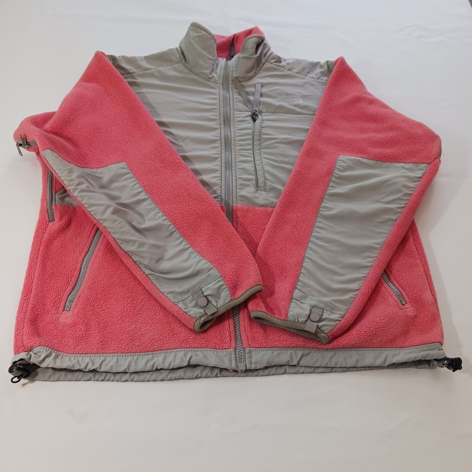 - The North Face Jacket Women’s Pink/Gray Fleece Full Zip Pockets Armpit Zip Sz M