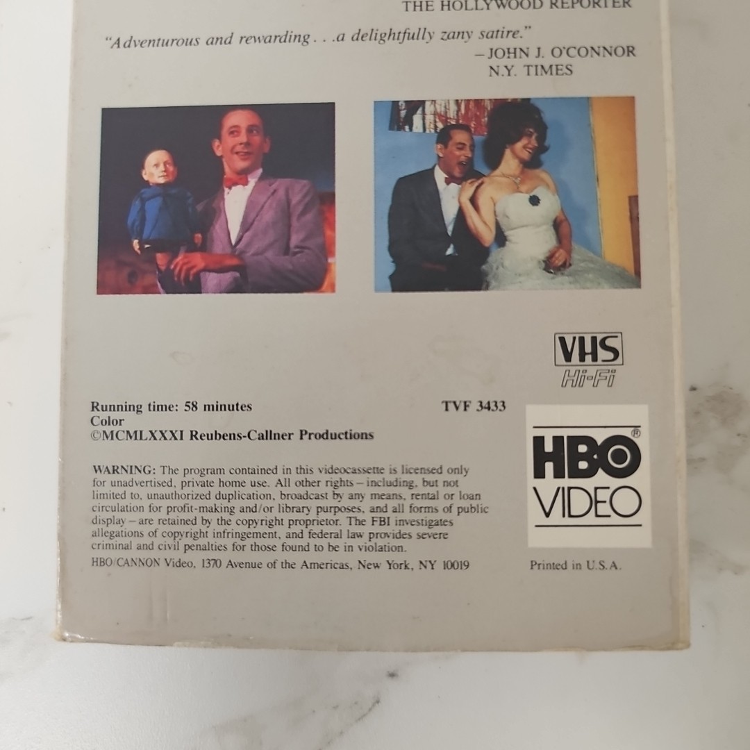 The Pee-Wee Herman Show VHS is a vintage comedy film from 1981 starring Paul Reubens. This l VHS tape features the iconic Pee-Wee Herman character in a hilarious and entertaining TV show that brought laughter to audiences. Produced by HBO Home Video, this classic gem showcases the unique humor and talent of Paul Reubens, making it a must-have for fans of comedy and nostalgia.