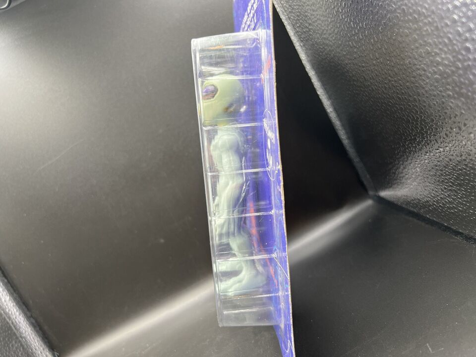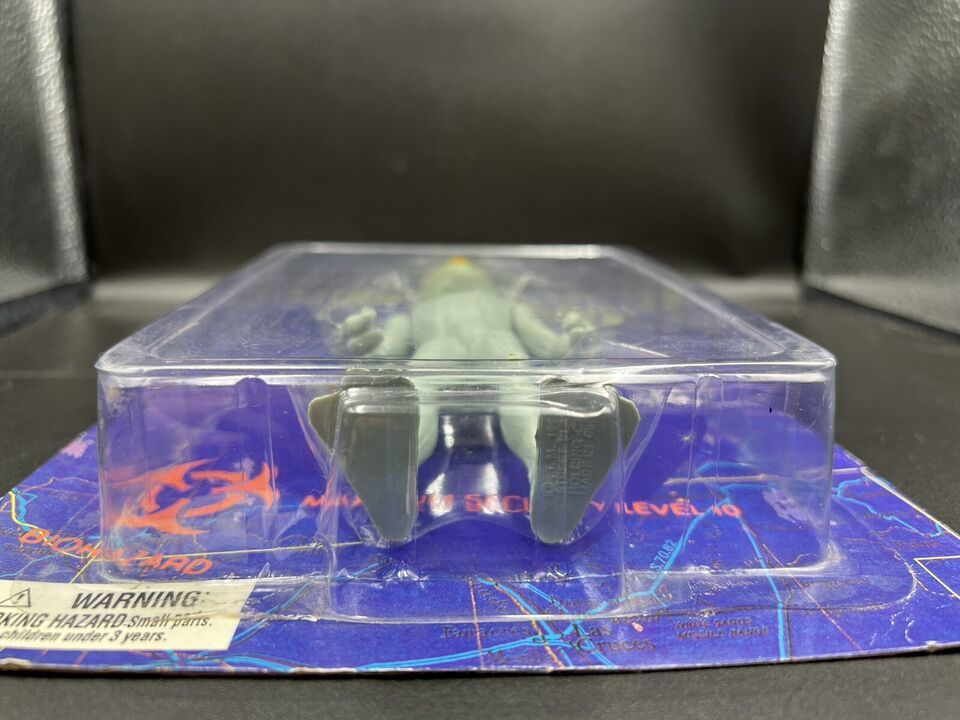 This is brand new in the package, however It appears the seal had a small breach. Which appears to have resulted in the alien sweating that brown you see around the fave ( kind of like when a house sweats from the ceiling )