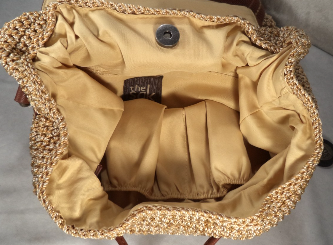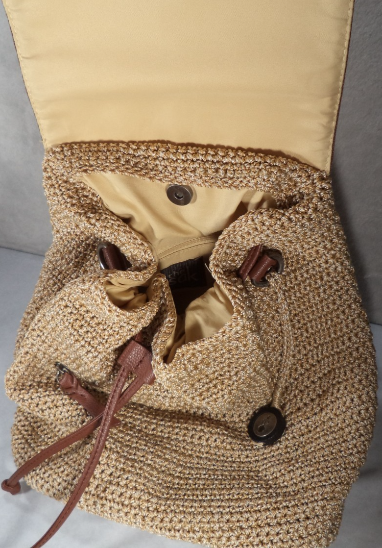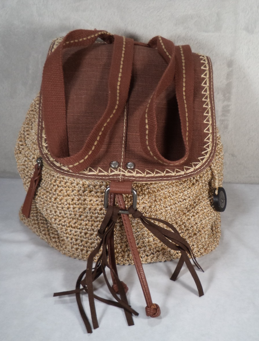 - The SAK Beige Brown Crochet Shoulder Bag Purse Double Shoulder Straps Backpack