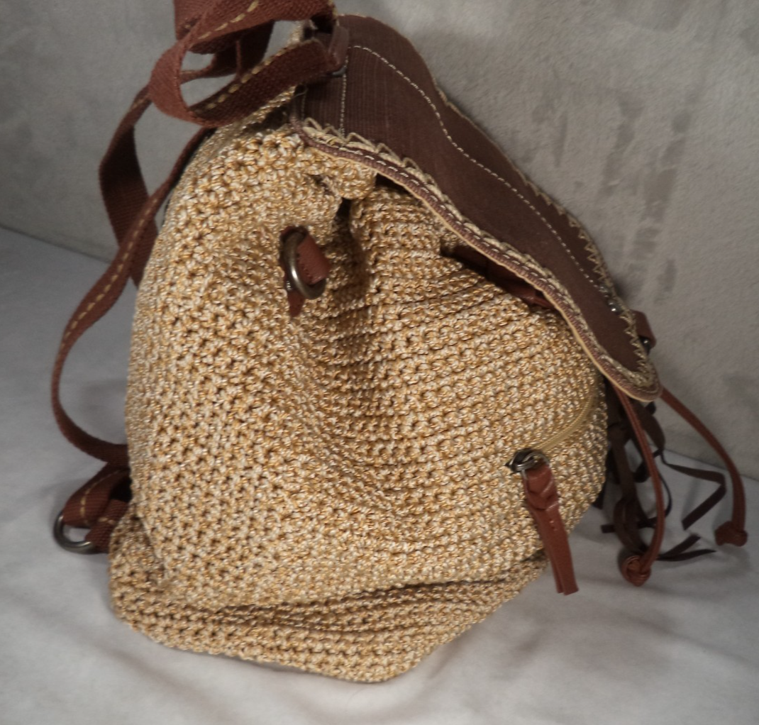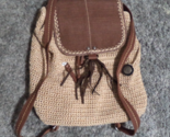 The SAK Beige Brown Crochet Shoulder Bag Purse Double Shoulder Straps Backpack