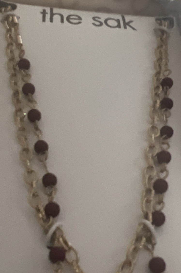 - The Sak 16” Layered Necklace W/3” Extender Goldtone Red Pendant Gold Half Moon